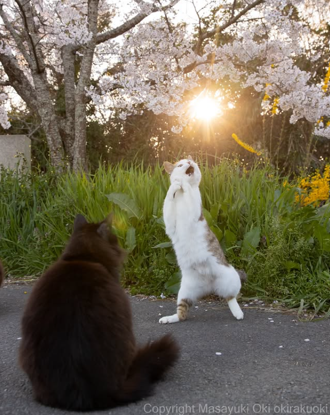 По его словам, кошки — это прирожденные комедианты, которые просто не осознают, насколько они смешны. Оки выпустил несколько фотокниг и регулярно проводит выставки по всей Японии, а его аккаунт в соцсетях насчитывает свыше пятисот тысяч подписчиков.