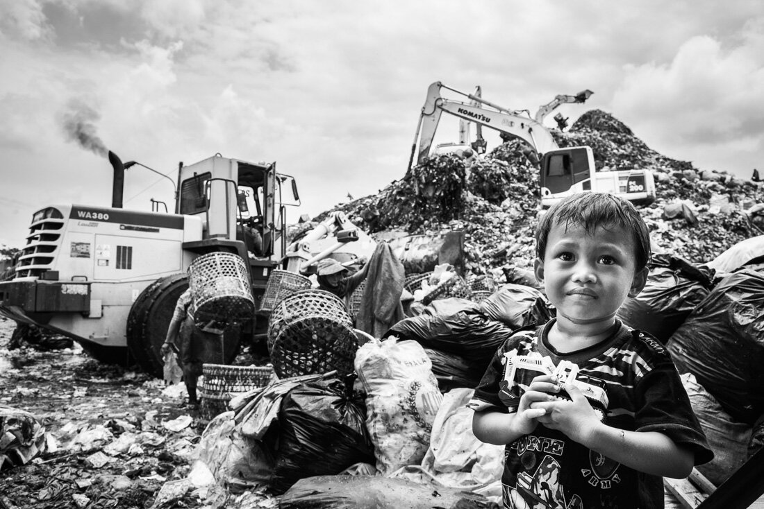 Примерно в 12 милях от Джакарты, на острове Ява в Индонезии находится Бантар-Гебанг — крупнейшая открытая свалка в Юго-Восточной Азии, на которую ежедневно поступает 9000 тонн мусора. Это ужасное место стало домом для трех тысяч семей, многие из которых рожают там детей.