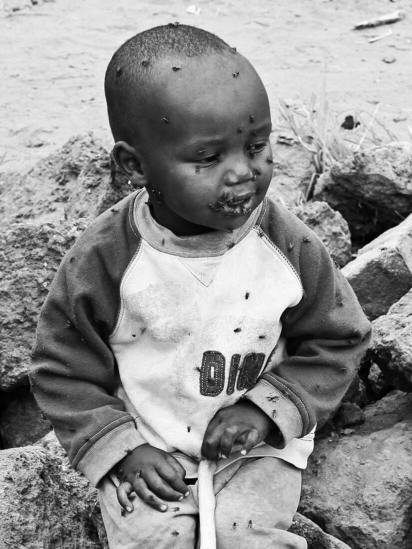 Для большинства детей обед — это просто чашка мучной каши, поскольку фондам приходится сокращать продовольственные пайки из-за нехватки финансирования. Мух можно было найти повсюду; Детская смертность очень высока из-за недоедания и отсутствия санитарии. Однако суровые условия и окружающая среда не могут скрыть невинность, сияющую в глазах детей, когда они борются с невзгодами и продолжают выживать и бороться.