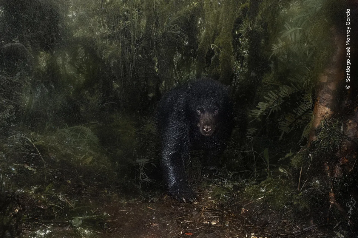 Сантьяго Хосе Монрой Гарсия (Santiago José Monroy García) «представляет захватывающий взгляд на напряженный взор этого андского медведя. Сантьяго был доволен снимками с фотоловушки, которую он установил недалеко от Национального природного парка Чингаза в Колумбии».