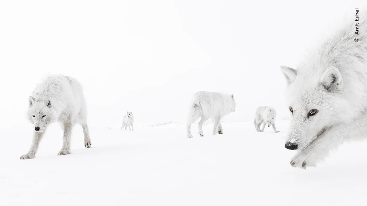 Амит Эшель (Amit Eshel) «оказывается на уровне глаз с любопытной стаей арктических волков. При температуре −35°C (-31°F) Амит изо всех сил пытался осуществить свою мечту — сфотографировать неуловимых арктических волков на острове Элсмир. Но на двенадцатый день его второй поездки они подошли ближе, чем он мог себе представить, настолько близко, что он мог почувствовать их дыхание».