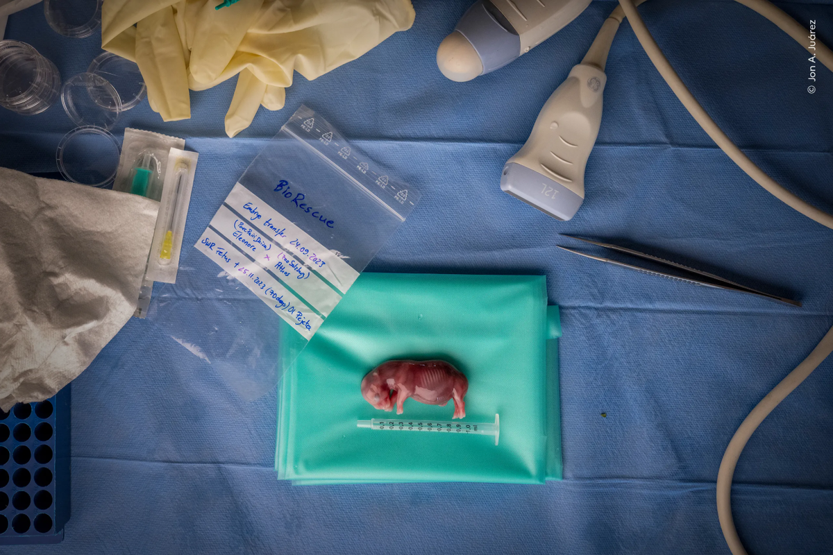 Джон А. Хуарес (Jon A Juárez) «документирует новаторскую научную работу по спасению северного белого носорога от вымирания с помощью экстракорпорального оплодотворения (ЭКО). Джон потратил годы на документирование работы проекта BioRescue. Он говорит, что стать свидетелем вехи в спасении вида — „это то, что я никогда не забуду“. Этот плод южного белого носорога стал результатом первой успешной пересадки эмбриона носорога суррогатной матери с помощью ЭКО. Из-за инфекции плод не выжил. Этот прорыв прокладывает путь к спасению редкого северного белого носорога от вымирания. Ученые могут предпринять следующие решающие шаги по переносу первого эмбриона северного белого носорога суррогатной матери — южному белому носорогу».