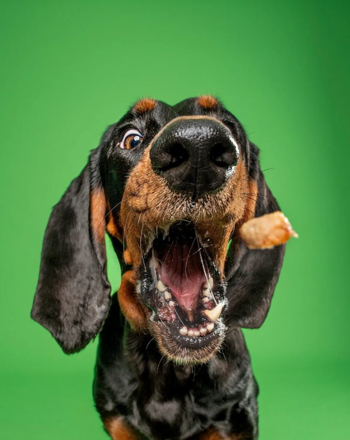 «Это Нару, кунхаунд. Как видно, она в полном восторге от сессии ловли лакомств, которую я проводил. Мы собирали средства для местных собачьих благотворительных организаций. Думаю, её девиз был: „Чем больше я ем — тем больше мы заработаем“. И она была права».