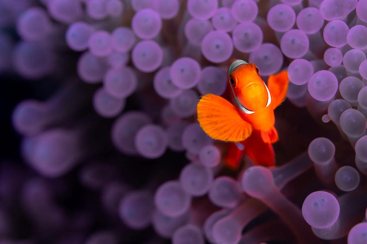 «Я нашла эту культовую рыбку в необычайно красивой анемоне во время погружения в Раджа-Ампат. Контрастные цвета в кадре, противоположные на цветовом круге, прекрасно работают вместе».