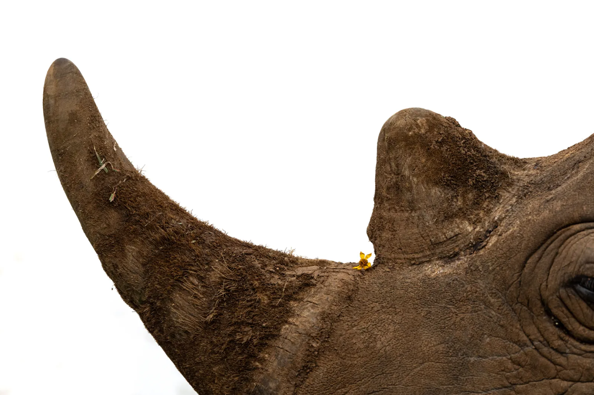 «Я фотографировала молодого белого носорога среди диких цветов в национальном парке Найроби. Его мать была рядом. Контраст между нежными цветками и первобытной силой этого животного поразил меня. Маленький цветок у основания рога — самого мощного и одновременно самого уязвимого места — стал символом хрупкости будущего этих гигантов».