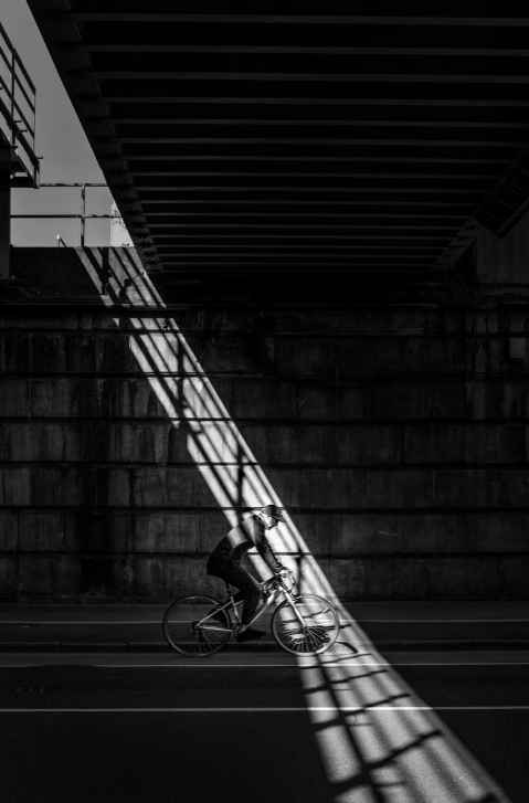 Во-вторых, вместо того чтобы снимать эмоции людей крупным планом, Шаллер использует строгую геометрию современного мегаполиса. Человек в его кадре часто — это лишь крошечная «точка», силуэт, затерянный в монументальных линиях зданий.