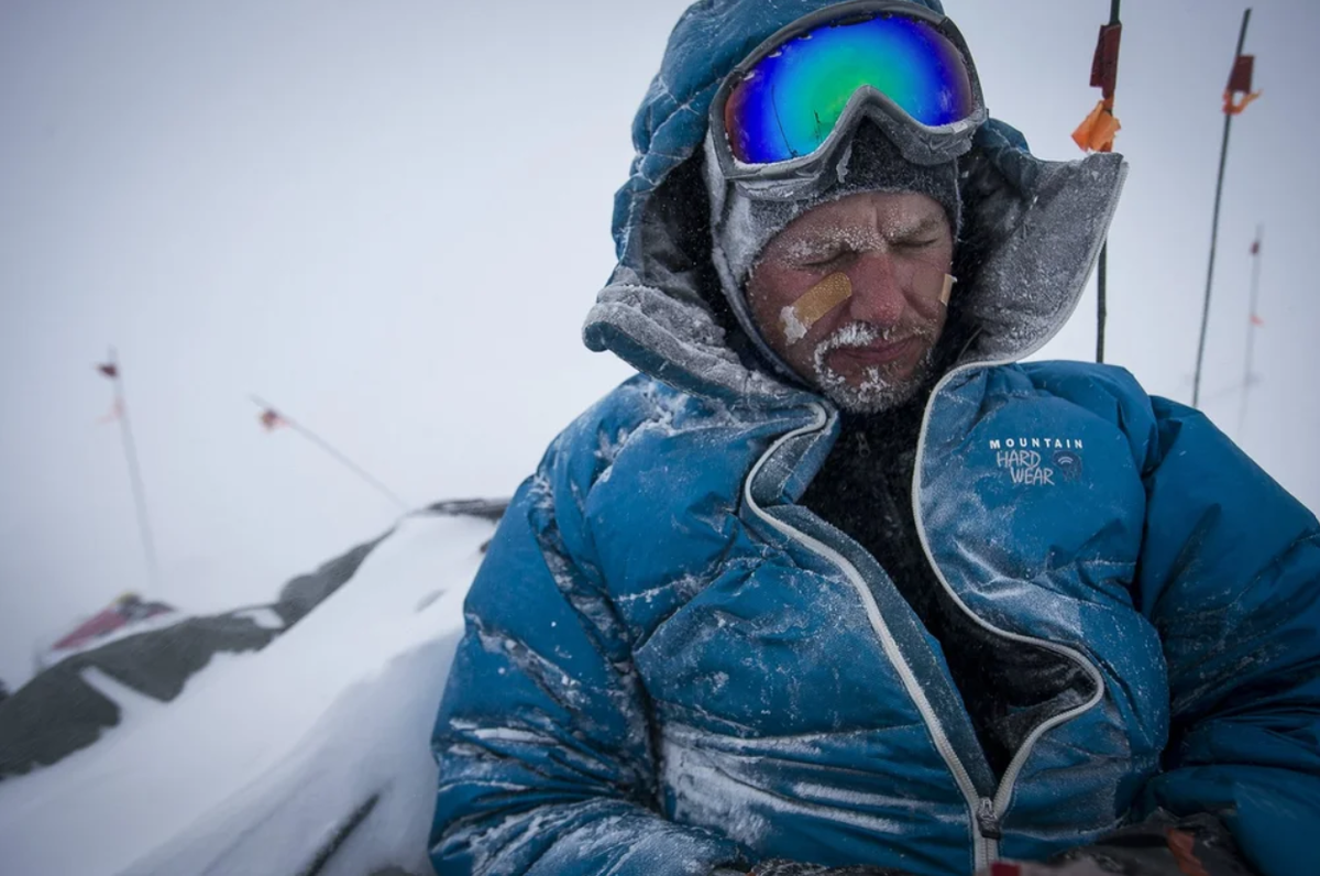 И буквально через несколько минут сделал фотографию — свое знаменитое селфи: лицо, обожженное холодом, ледяная корка на коже, взгляд, в котором еще не до конца осознано, что произошло.