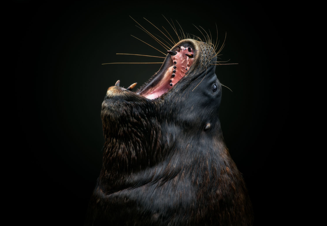 Он работает как портретист: выбирает мягкий, рассеянный свет, ловит момент, когда зверь перестает нервничать и просто «есть». А дальше делает главное — убирает из кадра все лишнее. Черный фон, которым славится его стиль, — не студия и не трюк с тканью. Это аккуратная обработка, когда настоящий темный угол в вольере превращается в глубину, поглощающую все вокруг модели.