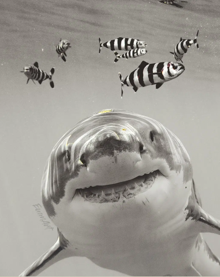 Вирусной стала и «улыбающаяся акула» — модель будто специально подплыла к камере и широко раскрыла пасть, демонстрируя идеальную улыбку. Этот кадр почти переворачивает наше представление о хищнике, показывая его с дружелюбной стороны.